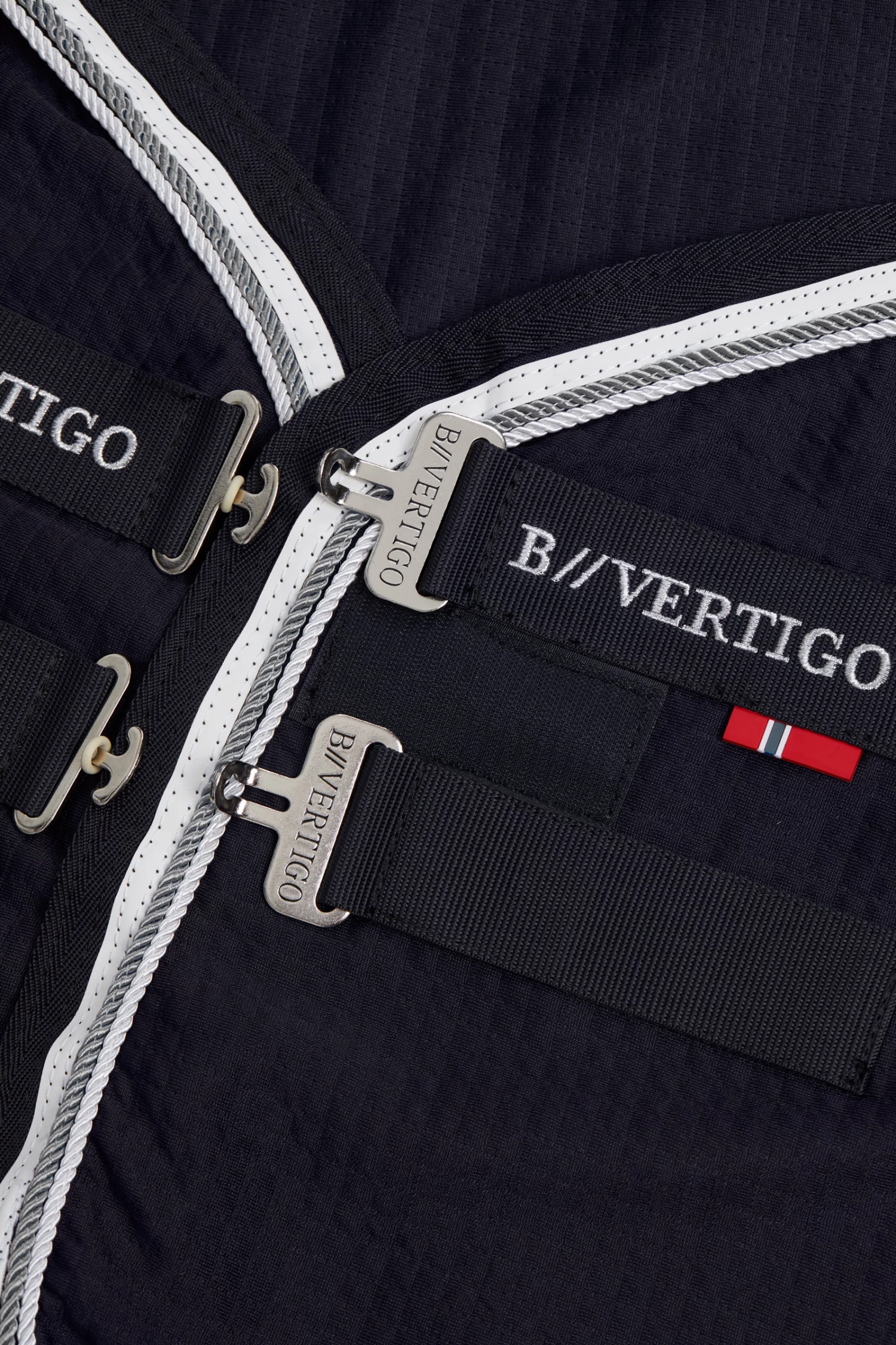 Die Cameron Decke besteht aus bequemem schnelltrocknenden Material mit UV-Schutz-Funktion. Das sportliche Design mit Kordeleinfassung luxuriös und stylisch. Doppelte T-Schnallen, die Kreuzgurte und der Schweifriemen halten die Decke an Ort und Stelle. Kombiniere sie mit unserem Cameron Halfter (#22334) und Führstrick (#22644) für einen tollen Look!