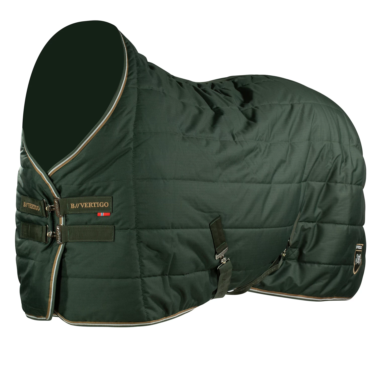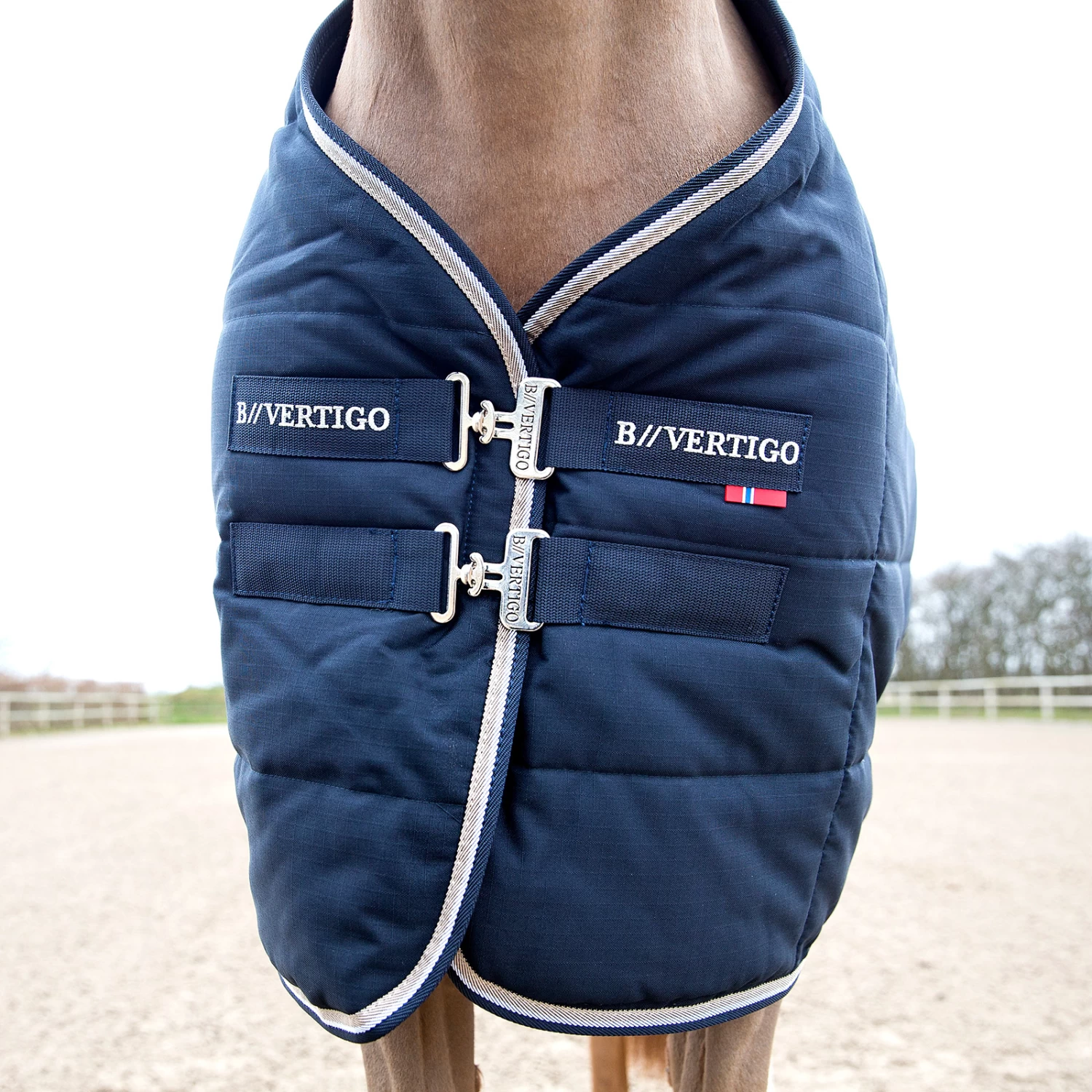 Das schlichte Design mit dem auffälligen B Vertigo Logo macht diese mittelschwere Stalldecke ideal für Pferde, die nachts im Stall stehen. Diese wasserdichte Decke wird auch nach einer Nacht, in der sich das Pferd in den Spänen und einer nassen Box gewälzt hat, immer noch frisch aussehen. Die Feuchtigkeit bleibt nicht in der Decke haften. Das Gewebe ist reißfest und franst nicht aus. Die nicht-reibende Schulterpartie verhindert Scheuern und macht einen zusätzlichen Schulterschutz unnötig.