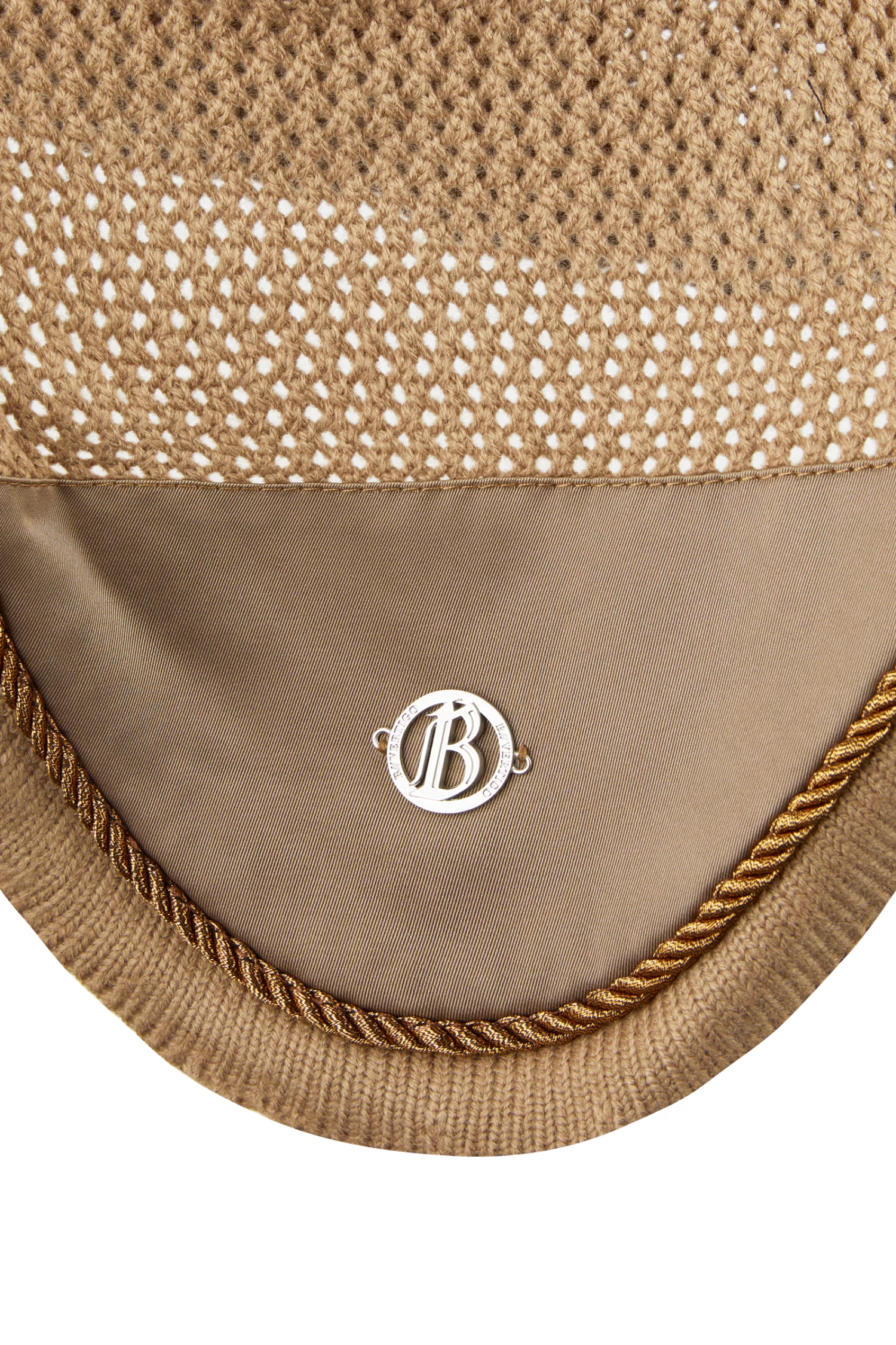 - B Vertigo Logo-Pin aus Metall in der Mitte und Logo-Aufnäher am Ohr