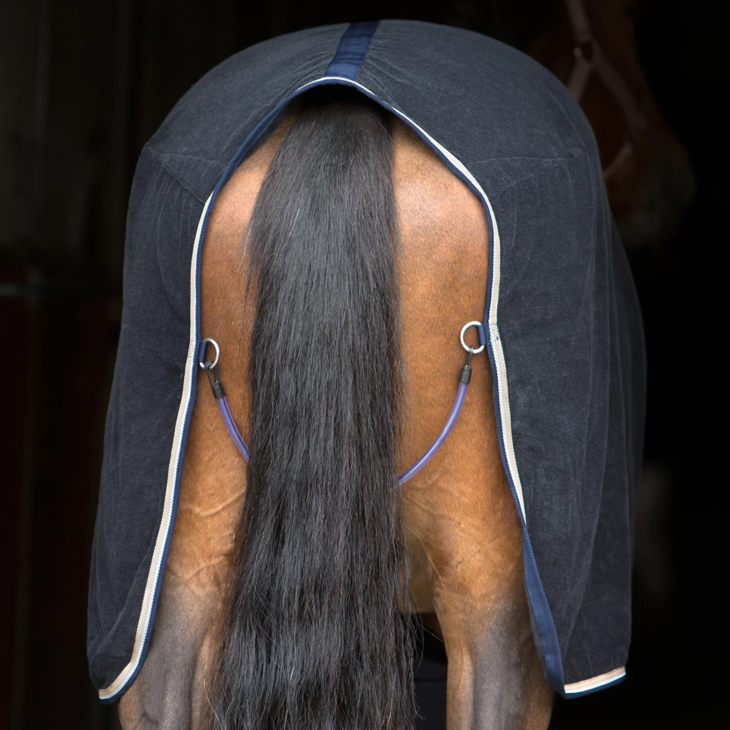 Weicher Baumwollfrottee verleiht dieser Abschwitzdecke ein bademantelartiges Gefühl für Ihr Pferd. Diese klassische Decke ist ideal als Abschwitzdecke an heißen Sommertagen zu verwenden. Dieses Frottee-/Fliegendecke wirkt schützend und ist dennoch leicht und eignet sich hervorragend für den Einsatz nach einem Bad oder dem Training. Ein einfacher, versteckter Gurt ist abnehmbar und der einfache Frontverschluss ist einfach zu bedienen. Die Standard Schweifkordel wirkt schützend vor dem Wind. Eine super Decke mit großartiger Passform.
