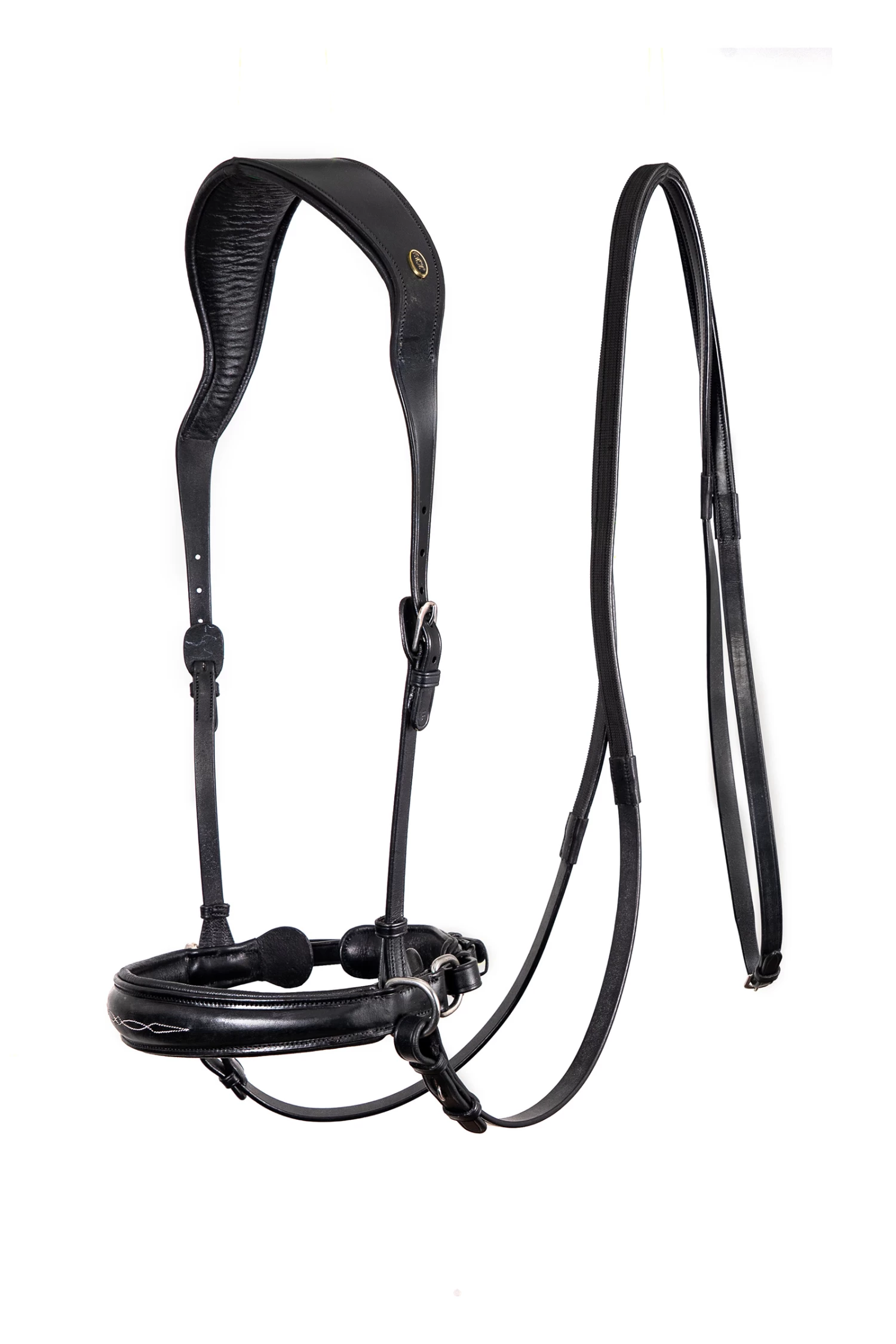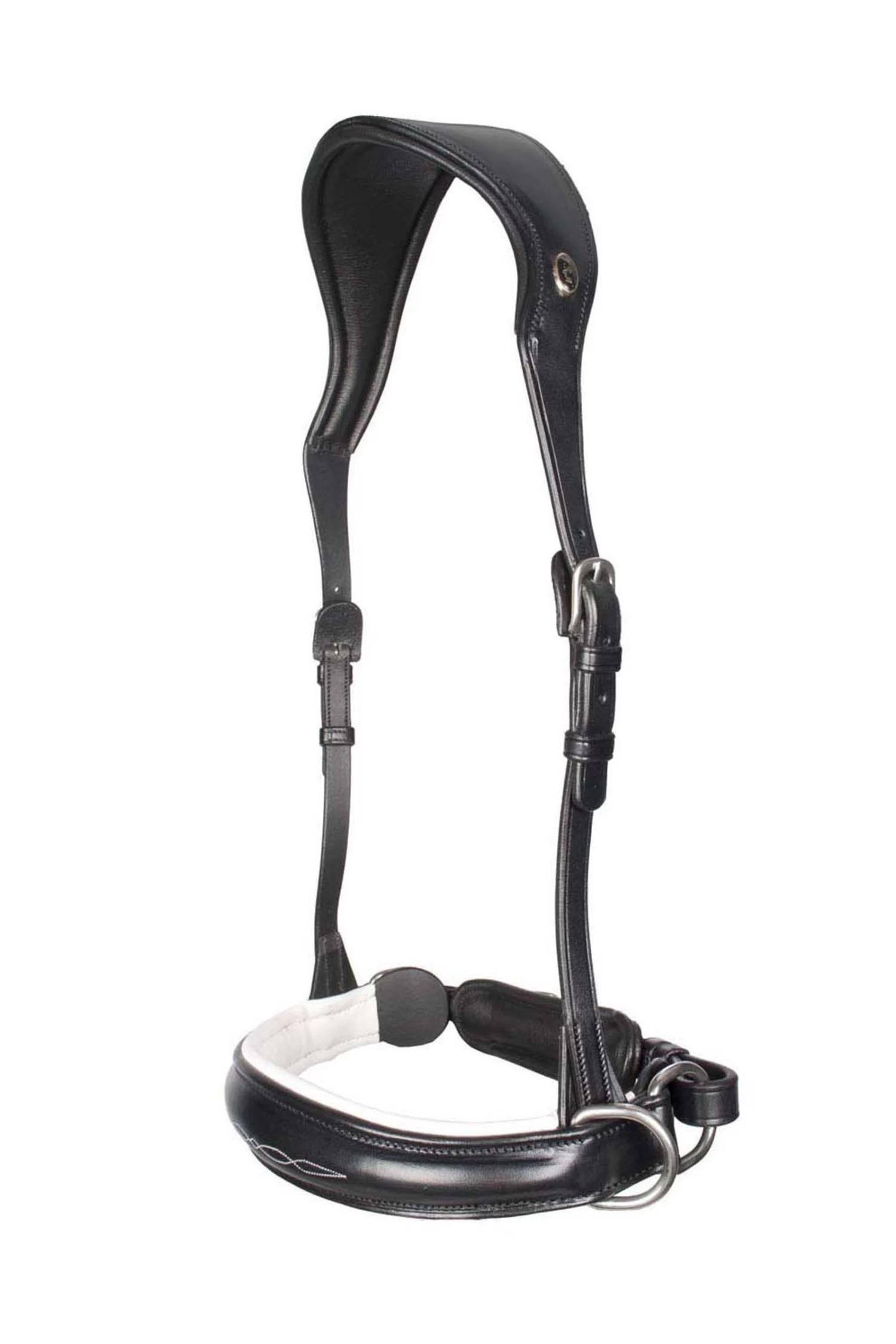 Diese Zäumung gehört zum Typ 3 des gebisslosen F.R.A.-Systems und ist im oberen Segment der F.R.A.®-Kollektion angesiedelt. Er ist aus hochwertigem englischem Leder gefertigt, hat ein Satin-Finish und ist sehr weich gepolstert. Charakteristisch sind die Nasenpads in den Kontrastfarben Weiß und Beige.