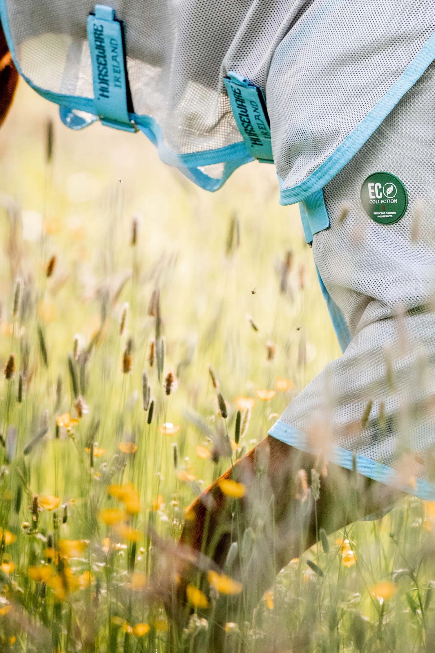 Die erste Bug Buster von Horseware, die auc recycelten Plastikflaschen hergestellt wird. Das Maschengewebe aus Polyester ist weich, schweißabsorbierend, reißfest und reflektiert das Sonnenlicht.