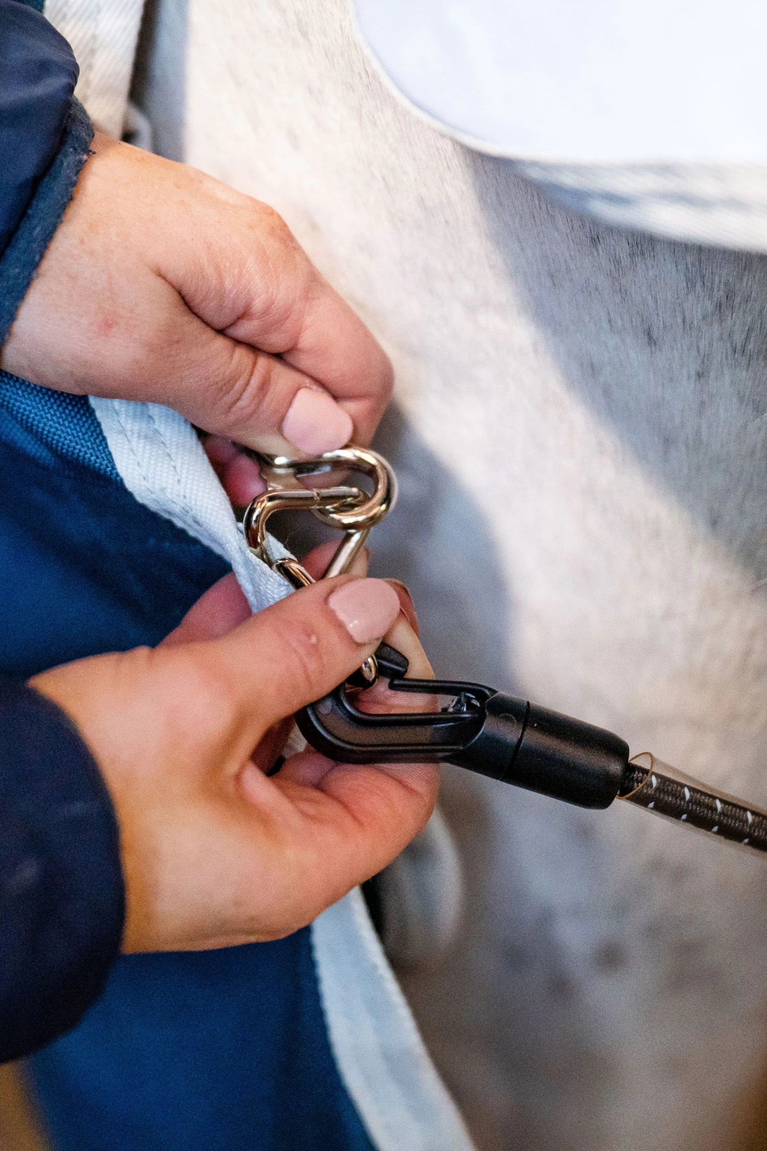 - Das Klettverschluss- und Clip-System lässt sich einfach und sicher an vielen Horseware-Decken befestigen, um ein Verrutschen zu verhindern.