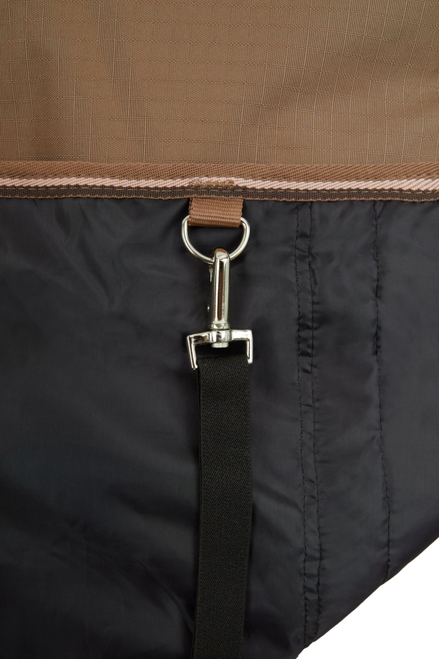 Diese Decke ist aus wasserdichtem, atmungsaktivem Material gefertigt. Der gute Sitz an Hals und Schultern macht sie bequem und die hohen Gehfalten bieten Bewegungsfreiheit, damit sich dein Pferd austoben kann und nicht eingeschränkt wird. Frontverschlüsse, Kreuzgurte und Beinschnüre halten die Decke sicher an ihrem Platz und verhindern Verrutschen.