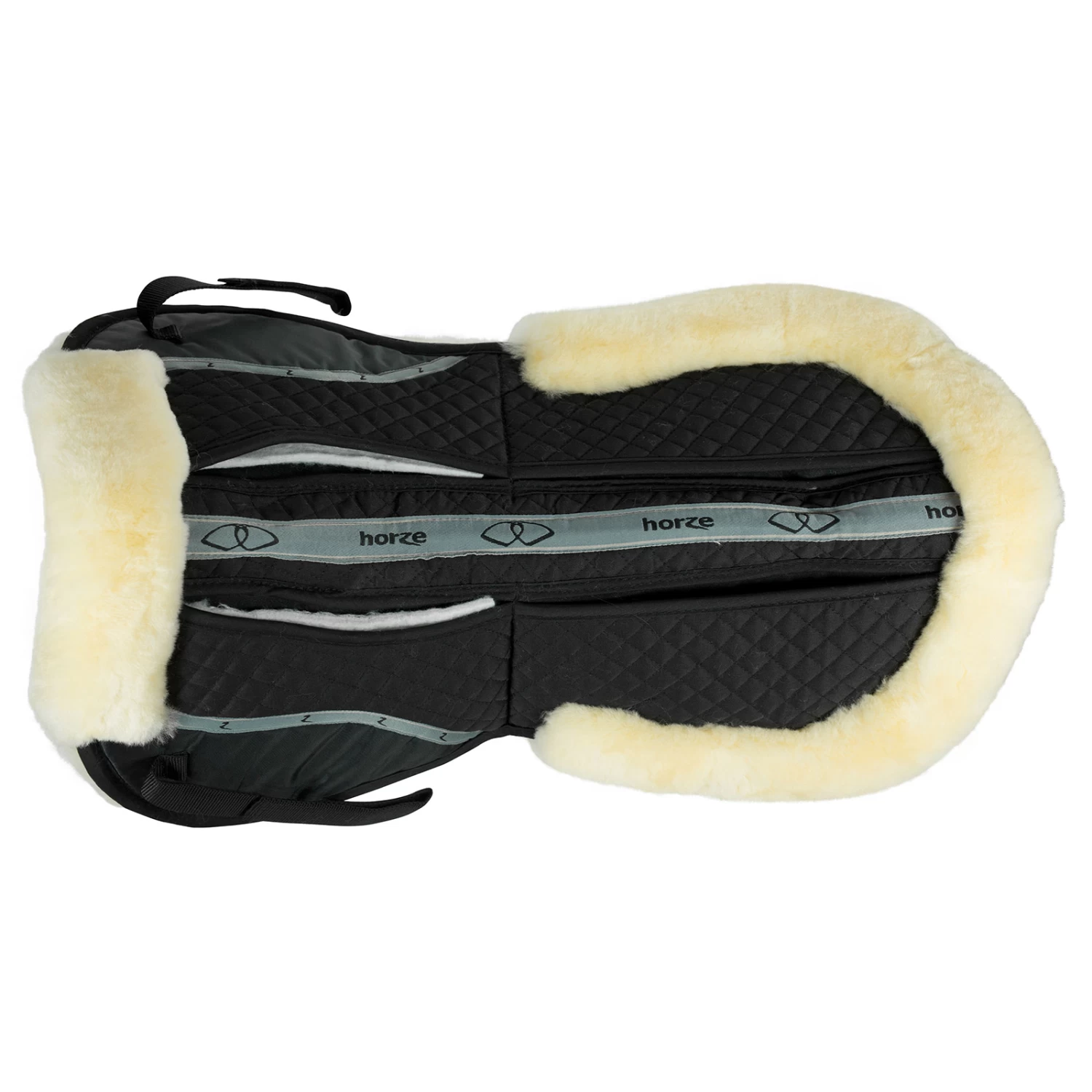 Das korrigierende Ausgleichs-Pad harmoniert mit dem gepolsterten Lammfell-Komfort und passt zu jedem Sattel.