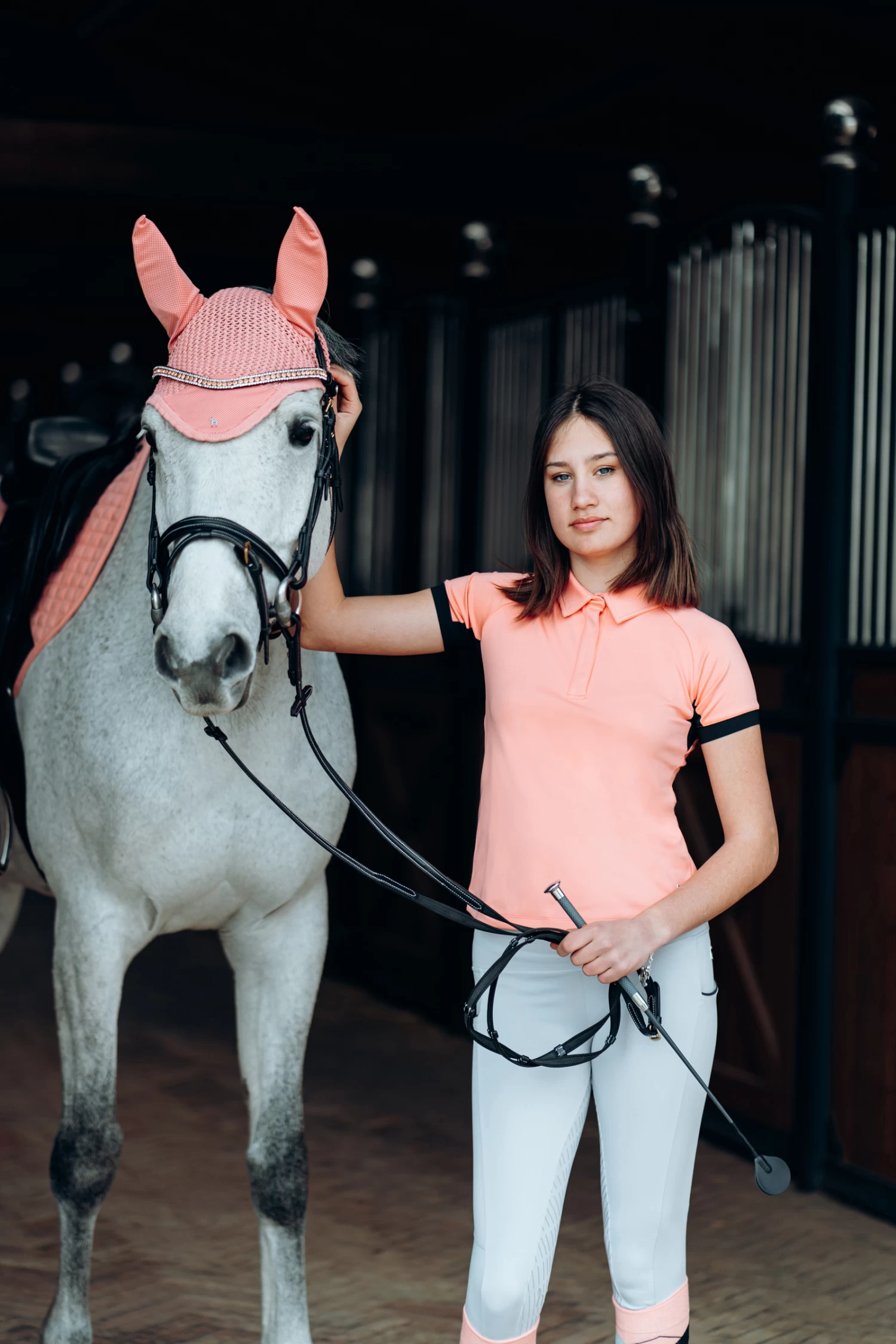 Unsere kühlende Horze Fliegenhaube schützt dein Pferd mit komfortablem Netzmaterial vor Überhitzung. Das Metallic-Logo ist ein subtiles Detail. Kombinierbar mit der kühlenden Schabracke (erhältlich im Dressur- und Vielseitigkeitsschnitt) für den kompletten Look.