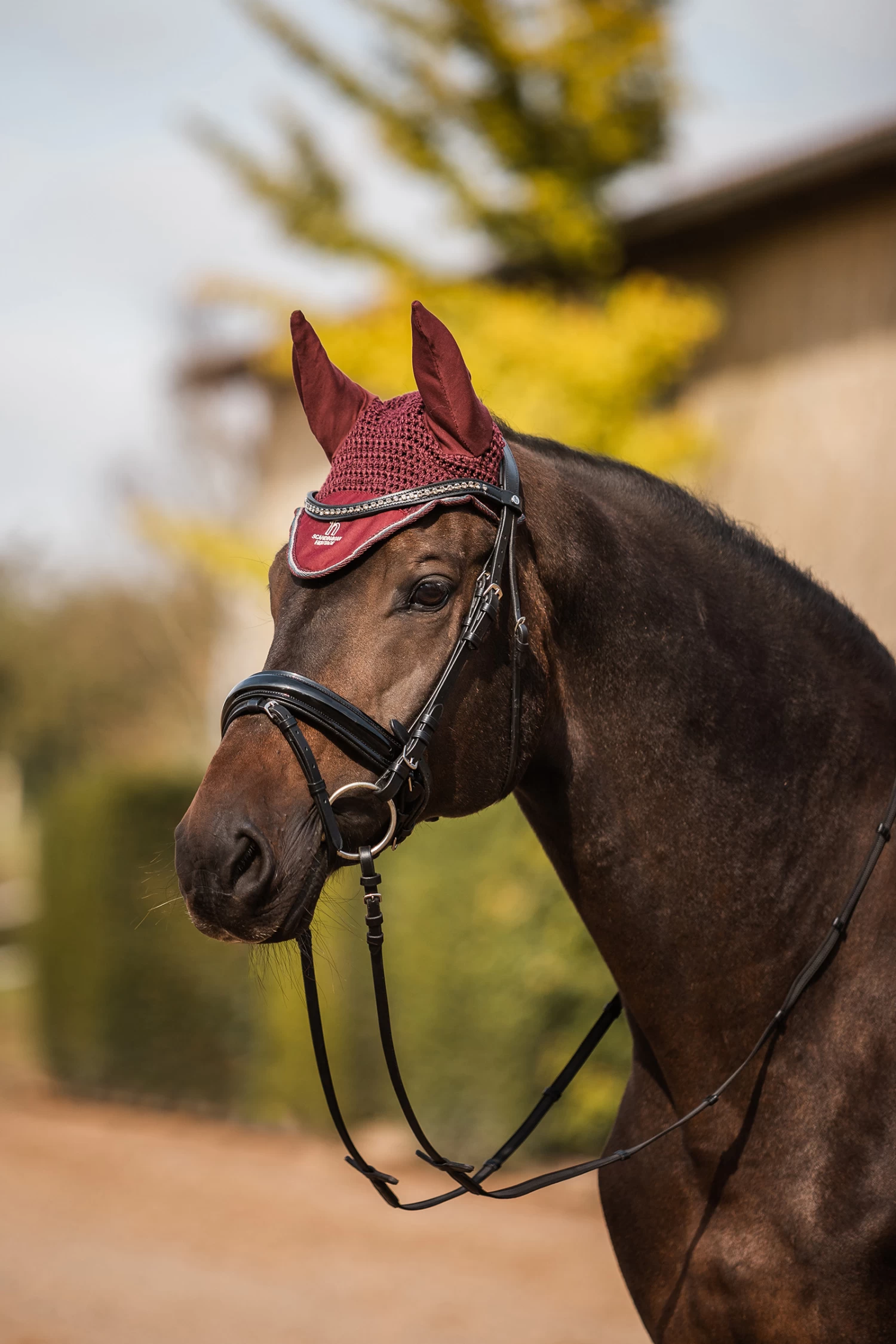 Die Horze Leighton Fliegenhaube ist aus weichem Häkelmaterial gefertigt. Elastische Ohren sorgen dafür, dass dein Pferd aufmerksam bleibt. Die tiefe Front und die mehrfarbige Einfassung sehen schick aus, und das Logo mit Stickerei vervollständigt den skandinavischen Look. Kombiniere die Fliegenhaube mit dem Rest unserer Horze Leighton Teenager-Kollektion für ein komplettes Set!