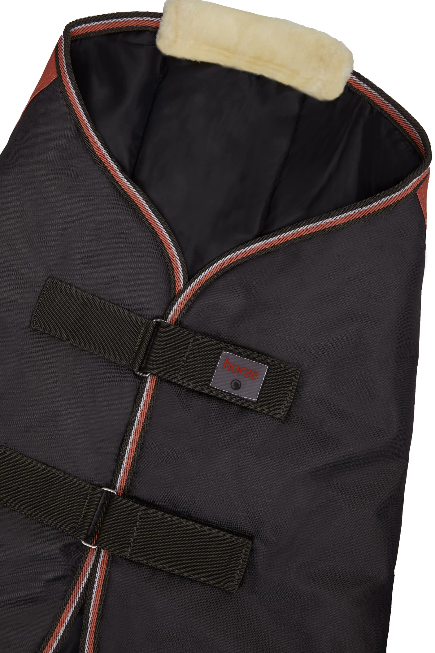 Das Horze Lucerne Halsteil besteht aus warmem, wasserdichtem Material. Es kann leicht an unseren Horze Lucerne Regendecken befestigt werden. Weiches Kunstfell sorgt für Komfort und Klettverschlüsse schließen sicher.