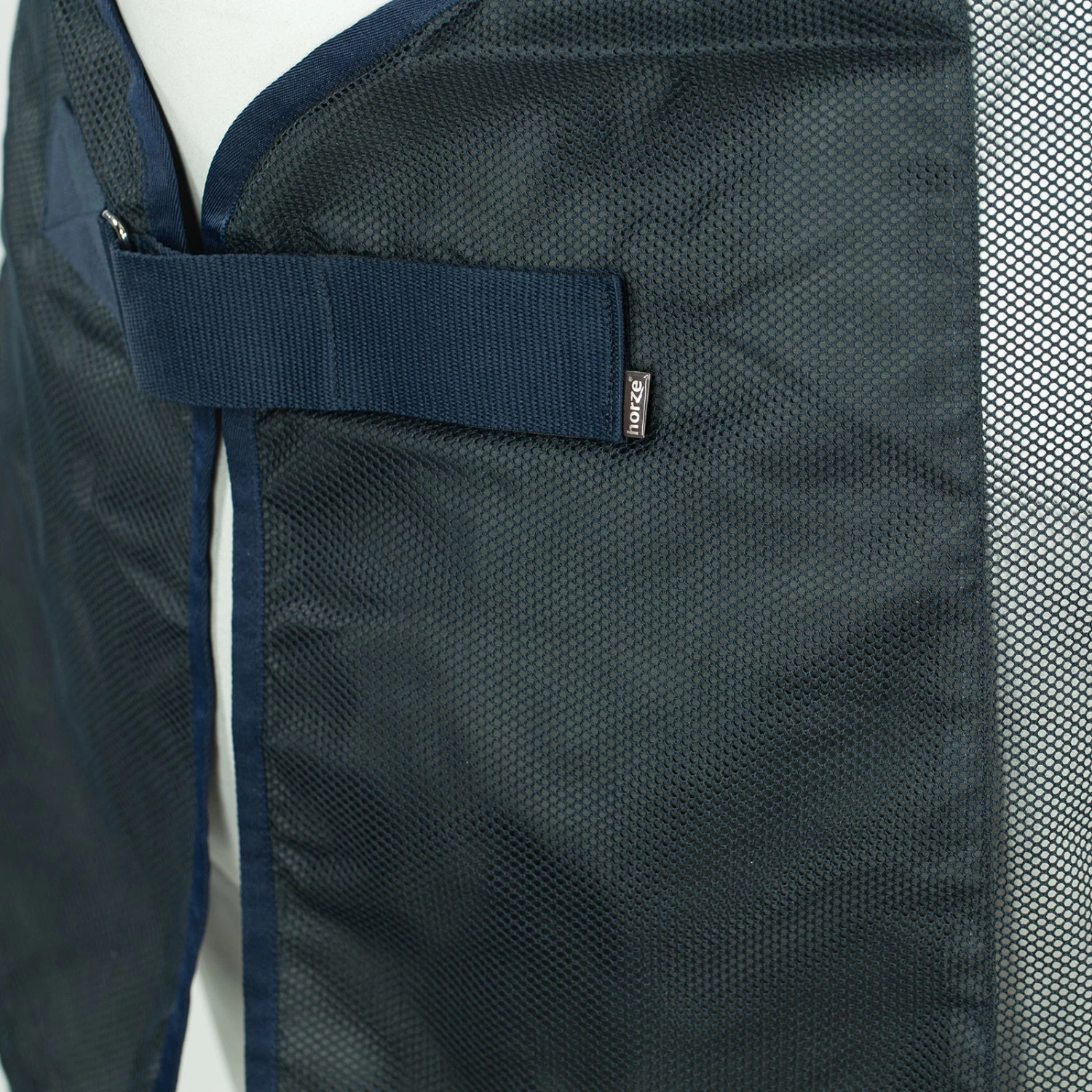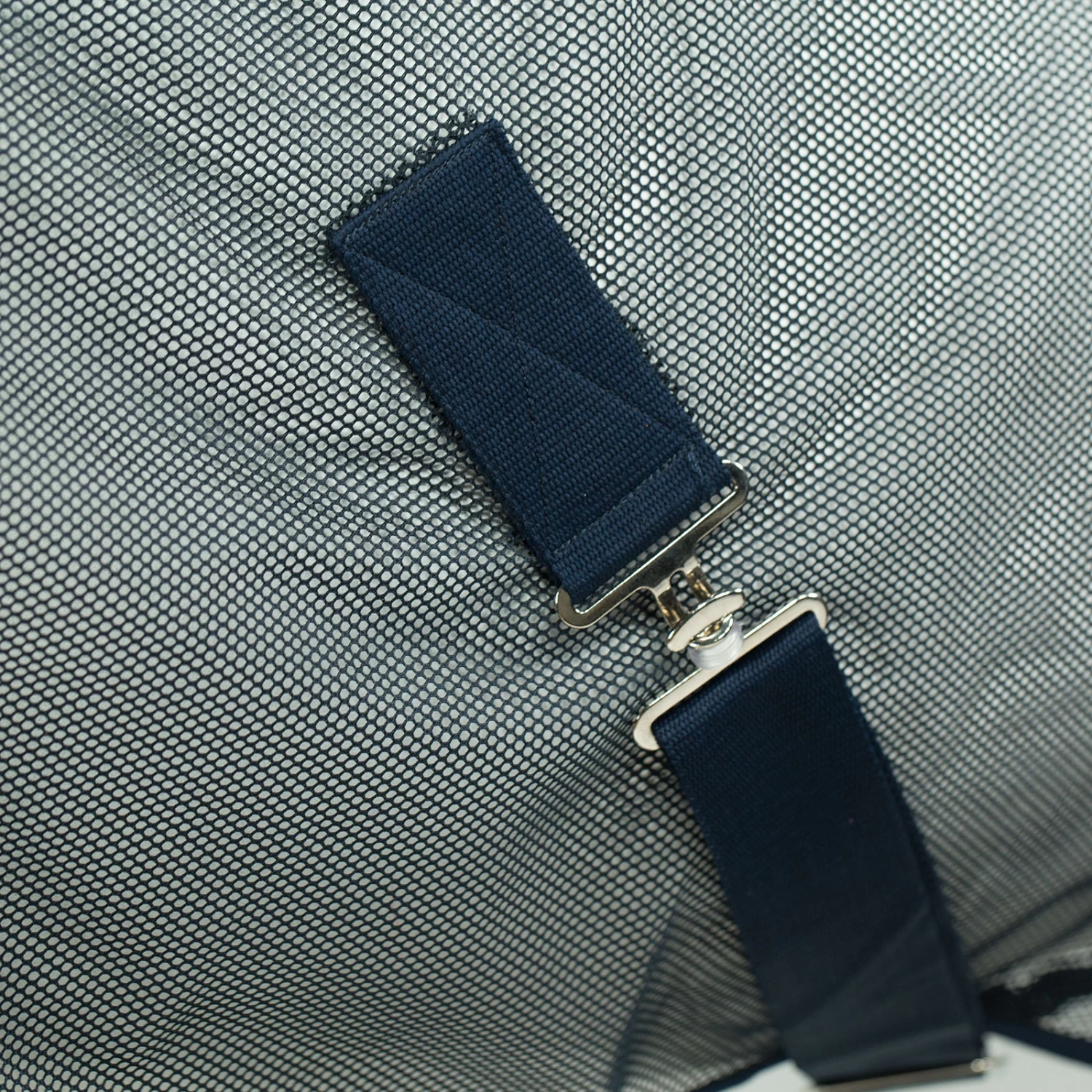 Perfekt für den Transport oder für den Einsatz im Stall. Diese leichte Mesh-Decke kann mit dem einfachen Front-Klettverschluss leicht angebracht und entfernt werden. Eine großartige Wahl als Fliegenschutz im Stall oder Transporter.