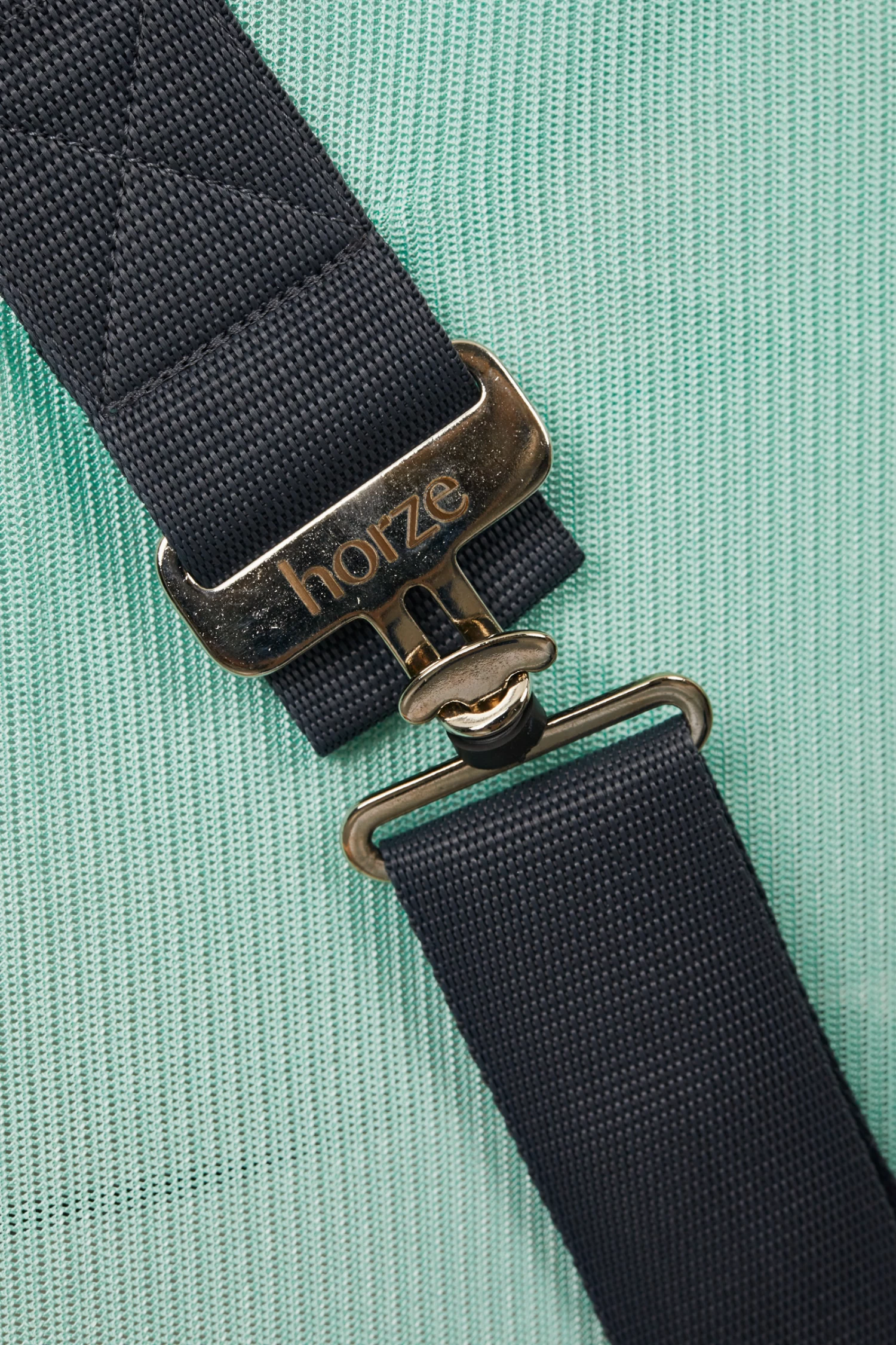 - Horze Logotape entlang des Rückens und auf dem Frontverschluss