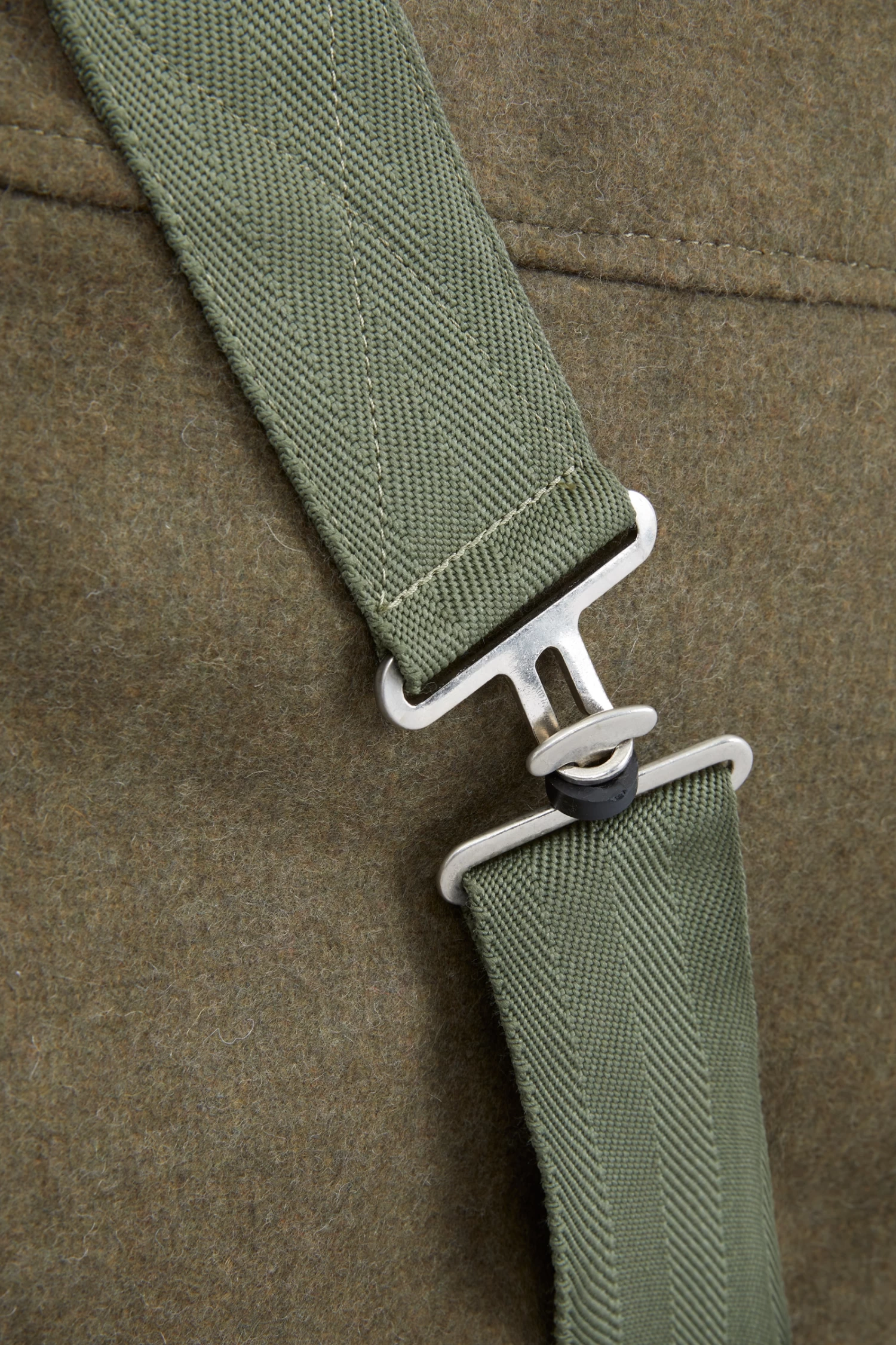 65% Wolle, 35% Polyester. (Bitte beachte: Auf dem eingenähten Etikett steht 100% Polyester, was nicht korrekt ist!).