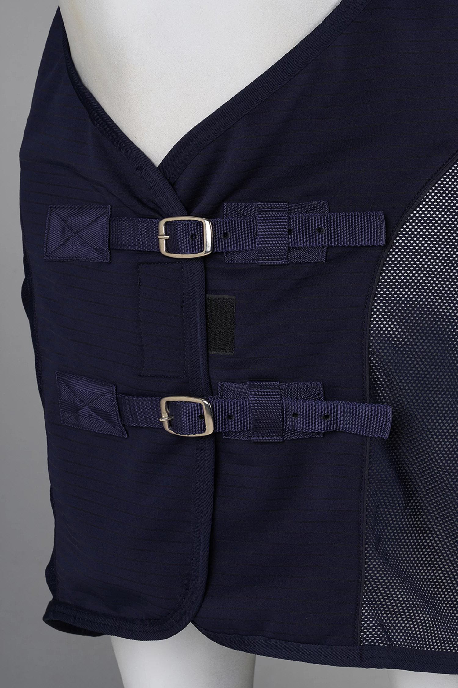 Diese Decke ist perfekt für den Sommer. Das Netzmaterial hält dein Pferd kühl, während die Stoffeinsätze an Schulter und Hals die nötige Wärme spenden. Das sorgt für die ideale Temperatur. Die zwei Brustverschlüsse, Kreuzgurte und der Schweiflatz verhindern ein Verrutschen und halten die Decke in Postition.