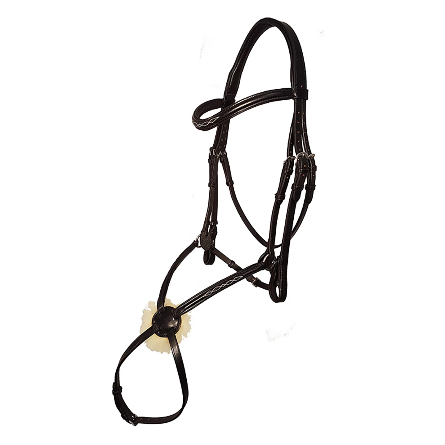 Die mexikanische Trense „Diandro“ besteht aus weichem Komfortleder und schmiegt sich angenehm an den Pferdekopf an. Das Genickstück ist anatomisch geschnitten und weich gepolstert. Kontrastnähte und Dekostick geben einen sportlichen Look. Das Nasenpolster ist austauschbar und besteht aus echtem medizinischen Lammfell. Das Stirnband ist leicht gebogen.