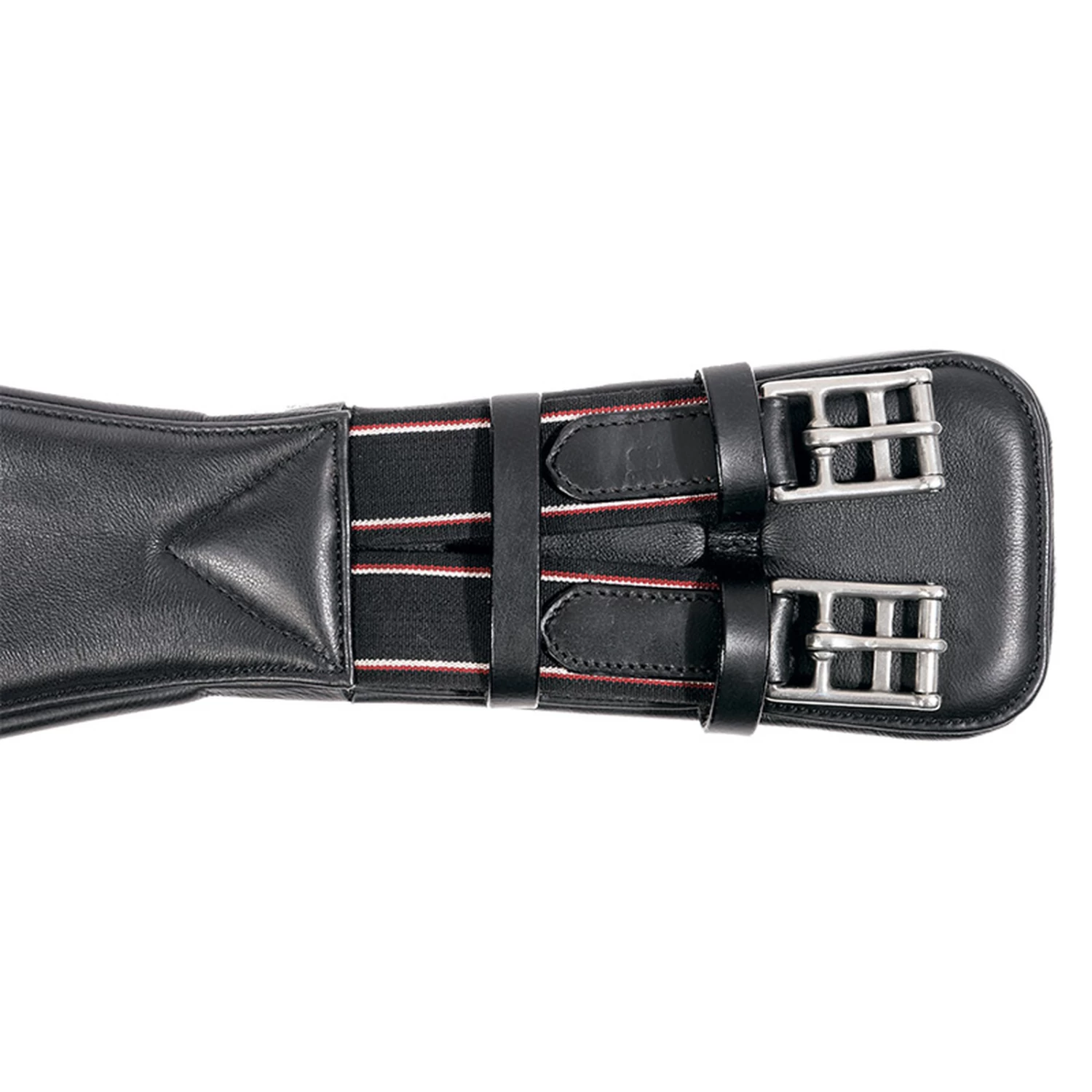 Lederkurzgurt aus speziellem pflanzlich gegerbten Softleder und Nylon-Einlage, mit schicken Ziernähten. 3-fache Elastzonen und rostfreie Edelstahl-Rollschnallen an beiden Enden, an einem D-Ringen lassen sich alle Hilfzügel oder Vorderzeuge befestigen.