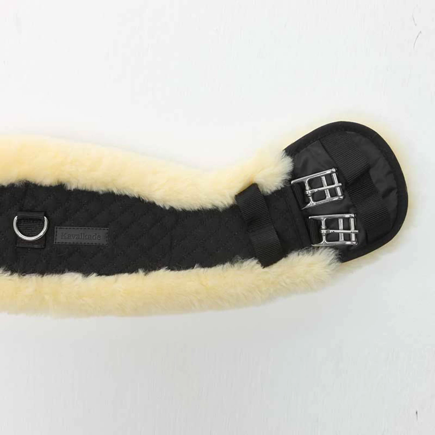 Besonders geschnittener Gurt mit echtem Lammfell, gerade für vorne sehr schmale Pferde geeignet, welche jedoch einen kurzen Rücken und breiten Rippenbogen haben. Oft rutschen Sättel bei diesen Pferden nach vorne, doch der Halbmond-Schnitt dieses Gurtes sorgt für genügend Halt, bei gleichzeitiger größerer Ellbogenfreiheit. Kein Elastik.