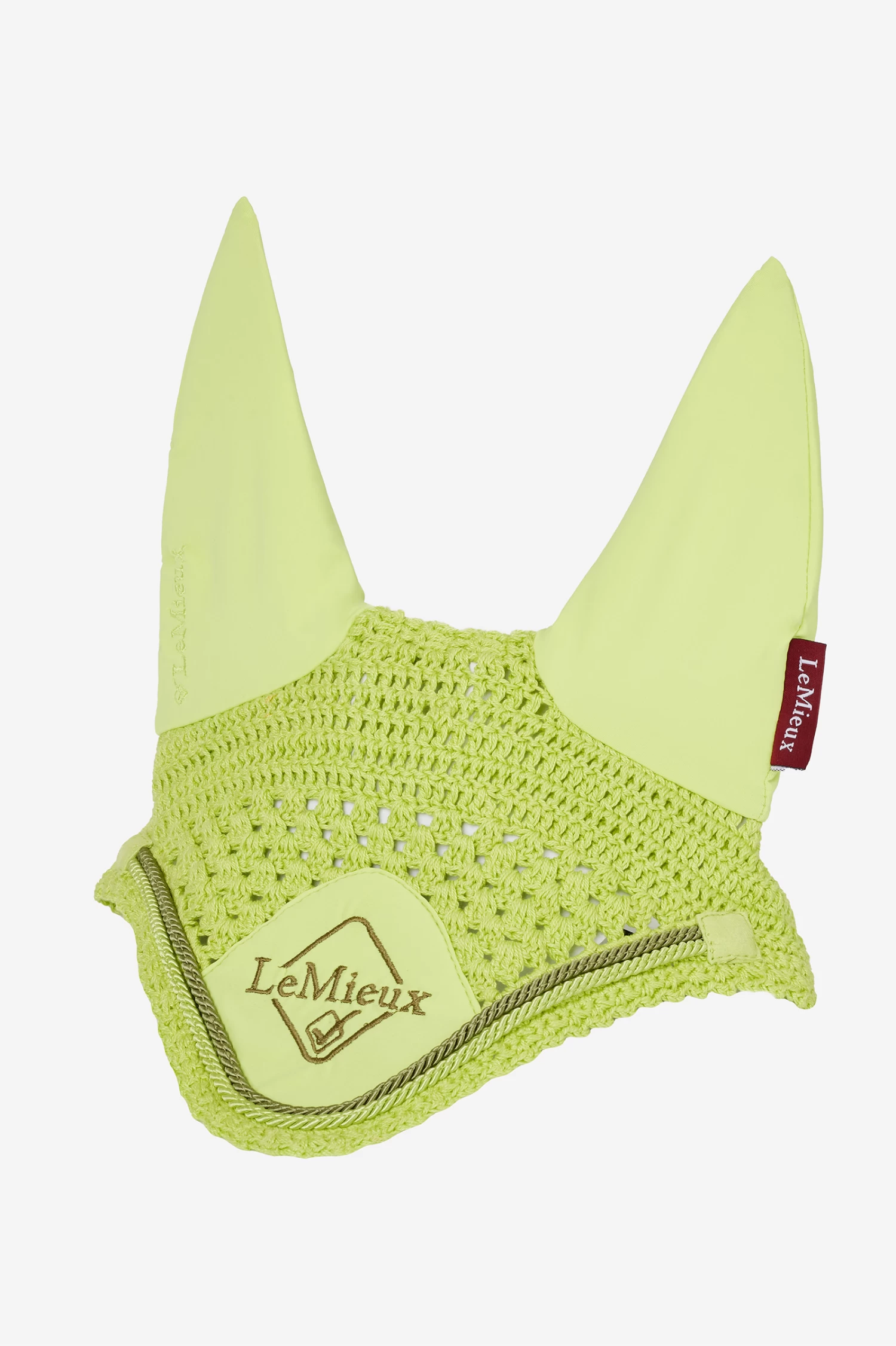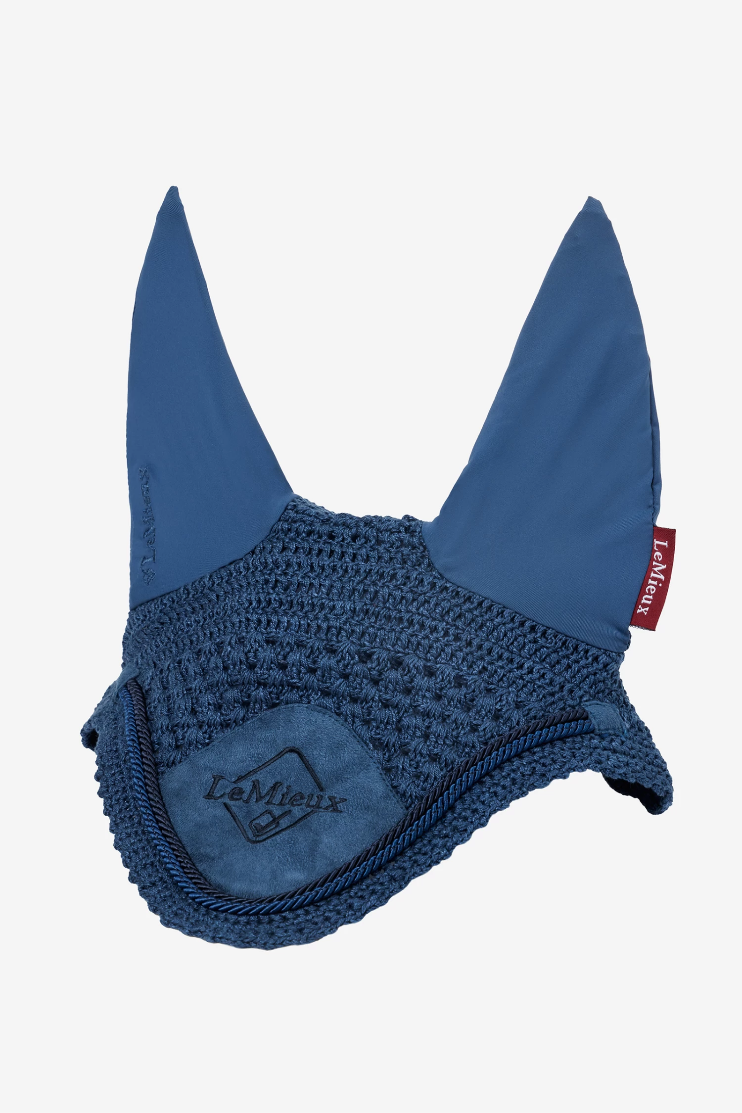 Aus hochwertiger 3-Wege-Häkelarbeit mit Flechtakzenten und ergänzt um weiches, bequemes Stretch im Ohrenbereich liegt diese Fliegenhaube sicher und eng unter der Trense an.