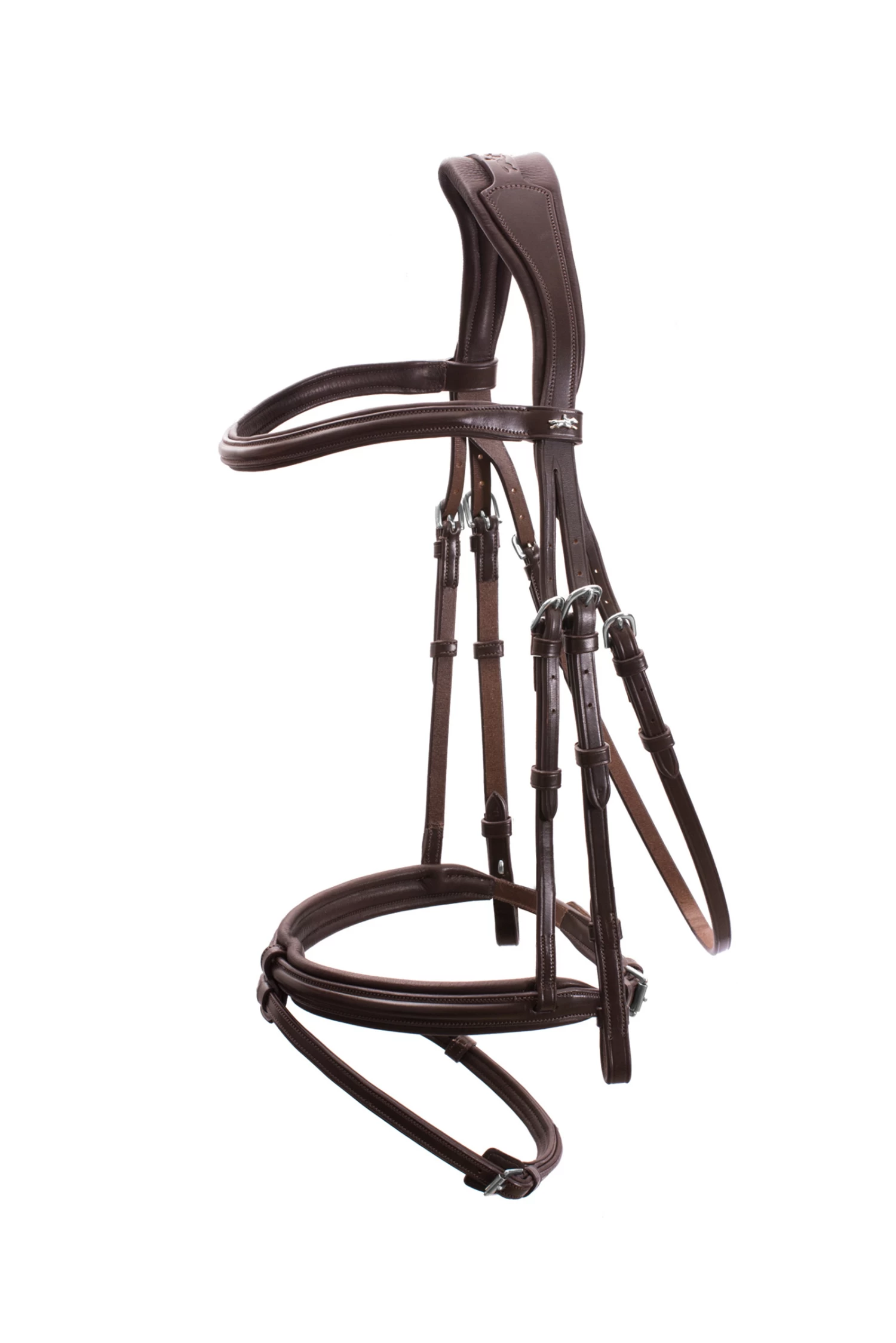 - Zaumzeug mit weichem, anatomisch geformtem, schmalem Genickstück und weich gepolstertem, anatomisch vorgeformtem Nasenriemen